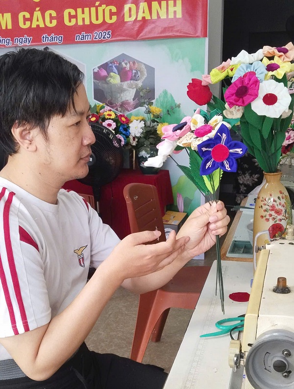 Hoa nhân tâm được thiết kế bởi một bạn trẻ khuyết tật, đó là bạn Triệu Quang Tiến, hiện đang làm việc tại Trung tâm dạy nghề (số 5 Đường Vạn Phúc, Hà Đông, Hà Nội. Có thể nói rằng, bông hoa sáu cánh này không chỉ là một tác phẩm nghệ thuật, mà còn là kết tinh của: