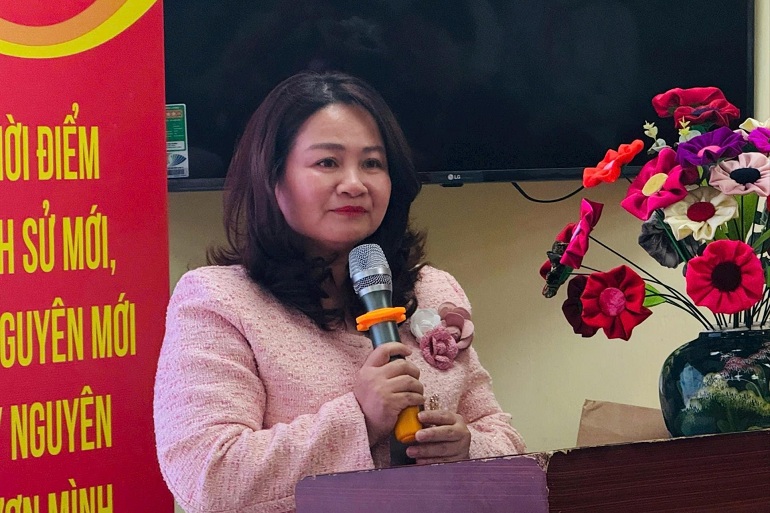 Hiệu trưởng Trường PTCS Xã Đàn, nhà giáo Lương Thu Hòa chia sẻ tại buổi lễ.