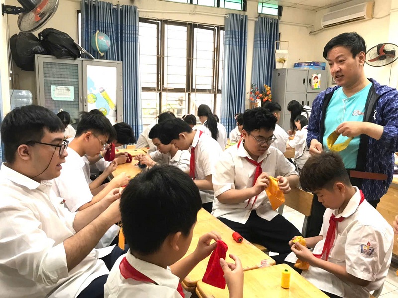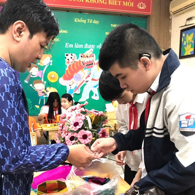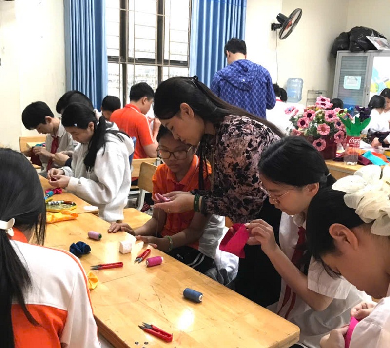 Sáng ngày 1 thang 4 năm 2026, Trường PTCS Xã Đàn (Hà Nội), Hội Cứu trợ Trẻ em Khuyết tật thành phố Hà Nội phối hợp với Trung tâm dạy nghề VAIDE đã tổ chức lớp dạy nghề làm hoa vải từ chất liệu tái chế dành cho học sinh khiếm thính.