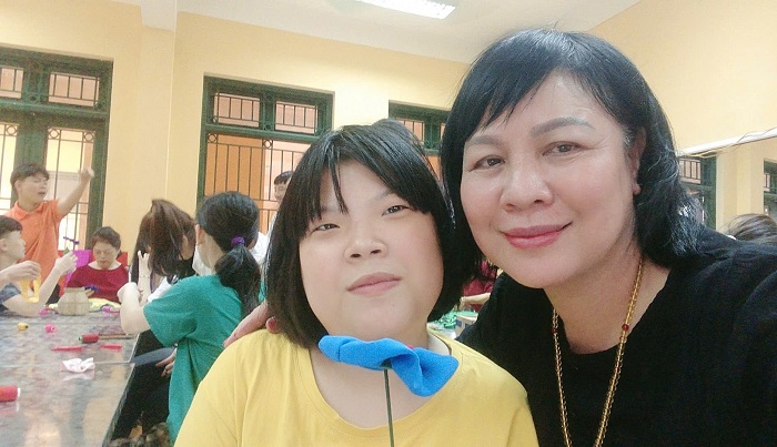 Bà Triệu Thị Hoa, Giám đốc Trung tâm Dạy nghề Vaide với các cháu khuyết tật